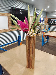 A new project in our range! The timber vase is a beautiful project, that results in a statement piece perfect for the home or office. This project utilises a range of skills and tooling, including (but not limited to): measuring and marking, fine motor skills, problem solving, using the drop saw, nail gun, drill and impact driver. This workshop is suitable for adults and children over 7, of all abilities. If booking for a child, a parent must stay for the duration of the workshop. Carers and support workers are welcome to attend. Enclosed shoes are a must. NDIS funding is welcomed. Please contact us for further details. Flowers not included in the worskhop.